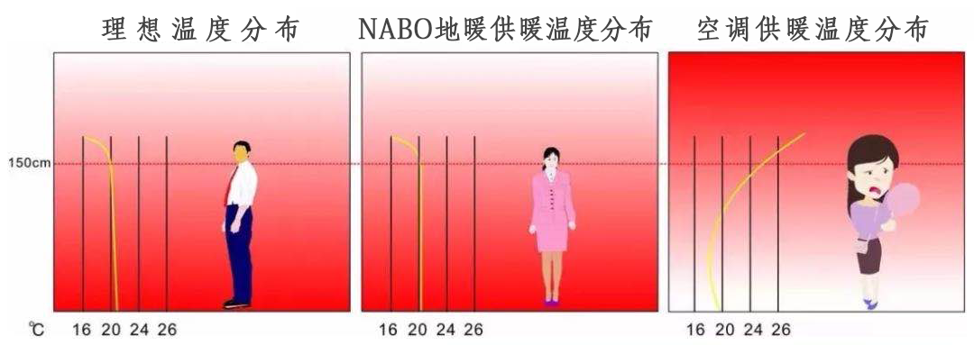 有别于其他采暖设备,Nabo“纳康宝”生态地暖铺装于地下,整面发热,由下至上进行全屋散热,室内均匀覆盖,让脚先开始变暖,让居家生活更加健康。