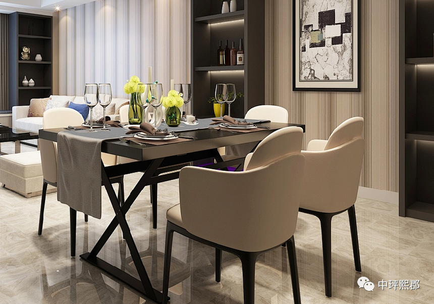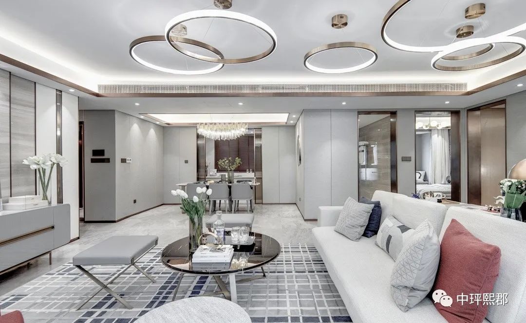 大通间:阔绰客厅与阳台、餐厅融会贯通,通透气派,抒写尊荣