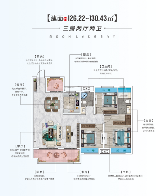 建面约126.22-130.43㎡奢阔空间双阳台设计