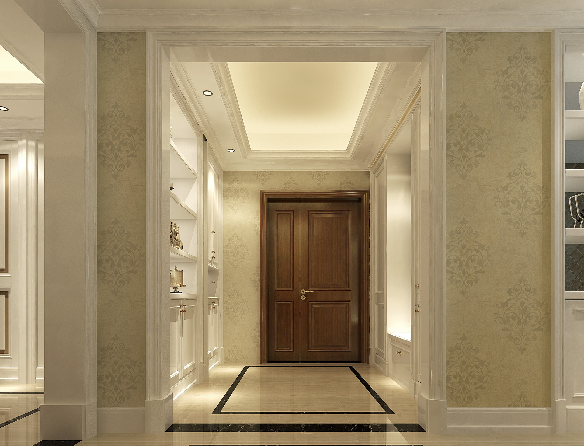 玄关,主人文化气质的脸面。东升·林语漫城不仅从艺术之美出发,更从实用性进行考量。玄关强大的收纳功能,快递收发、接收账单凭据等生活单据,物在其位,日常出入所需物品井井有条;亦或女主人的长靴、玩具、婴儿车等,皆各得其所。