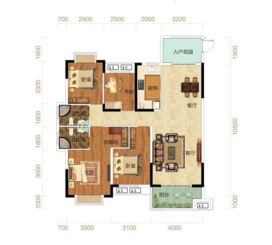 东升·林语漫城建面约138㎡四室两厅两卫户型,阔景阳台+入户花园,满足您一切延展空间需求。