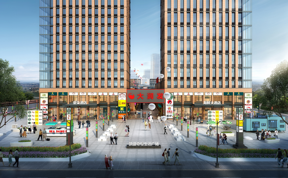 约6万方的凯盛奇·慢生活广场以超市航母“大润发·发到家”超市为商业引擎,携手众多特色美食和新型业态,为潜江带来惊喜,借鉴国外Block街区经典案例,整体打造开放式步行街区,集居住、办公、商务、出行、购物、文化娱乐、社交、游憩等各类复合功能为一体,让环境和建筑相容,相互作用、互为价值链、高度集约的Hopsca商业群。