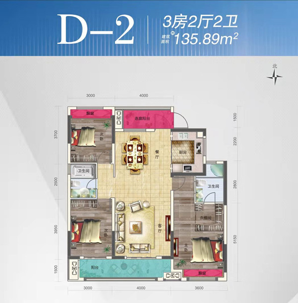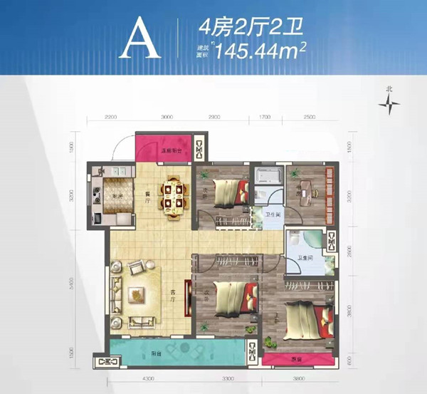 鑫园·未来城建面约128-145m²户型,以人为本,符合当代人的居住需求,双卫设计和主卧套房提升生活舒适体验,餐客一体敞阔空间轻松满足家庭多代同堂的居住诉求。
