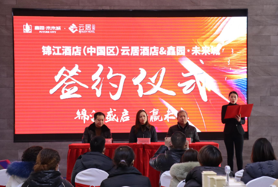 2022年1月13日,鑫园·未来城&锦江酒店(中国区)云居酒店战略签约仪式,在万众瞩目之下迎来了圆满落幕!鑫园·未来城代表、锦江酒店(中国区)代表、艺新酒店管理有限公司代表,行业专家、VIP嘉宾出席本次活动,共话未来新篇章。
