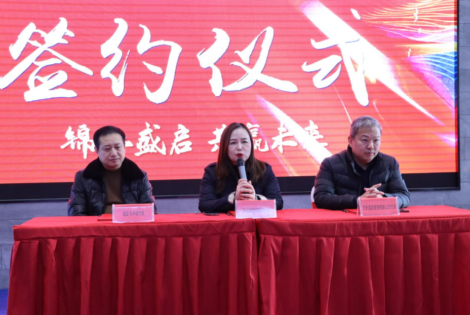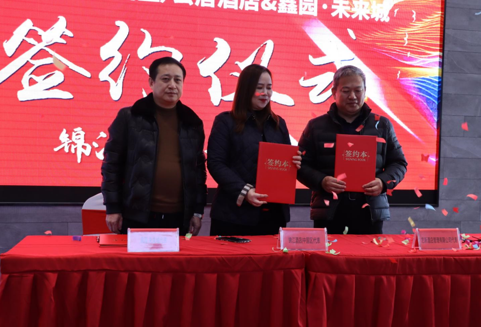 随后,在现场嘉宾与广大客户的共同见证下,鑫园·未来城代表、锦江酒店(中国区)代表、艺新酒店管理有限公司代表共同签署合作协议书。现场雷鸣般的掌声,将此次合作签约仪式推向高潮!