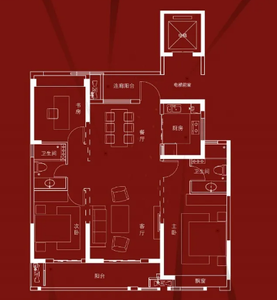 建面约131.12㎡三室两厅两卫的套房户型,不仅能够满足不同居者的居住习惯,又能做到互不打扰。