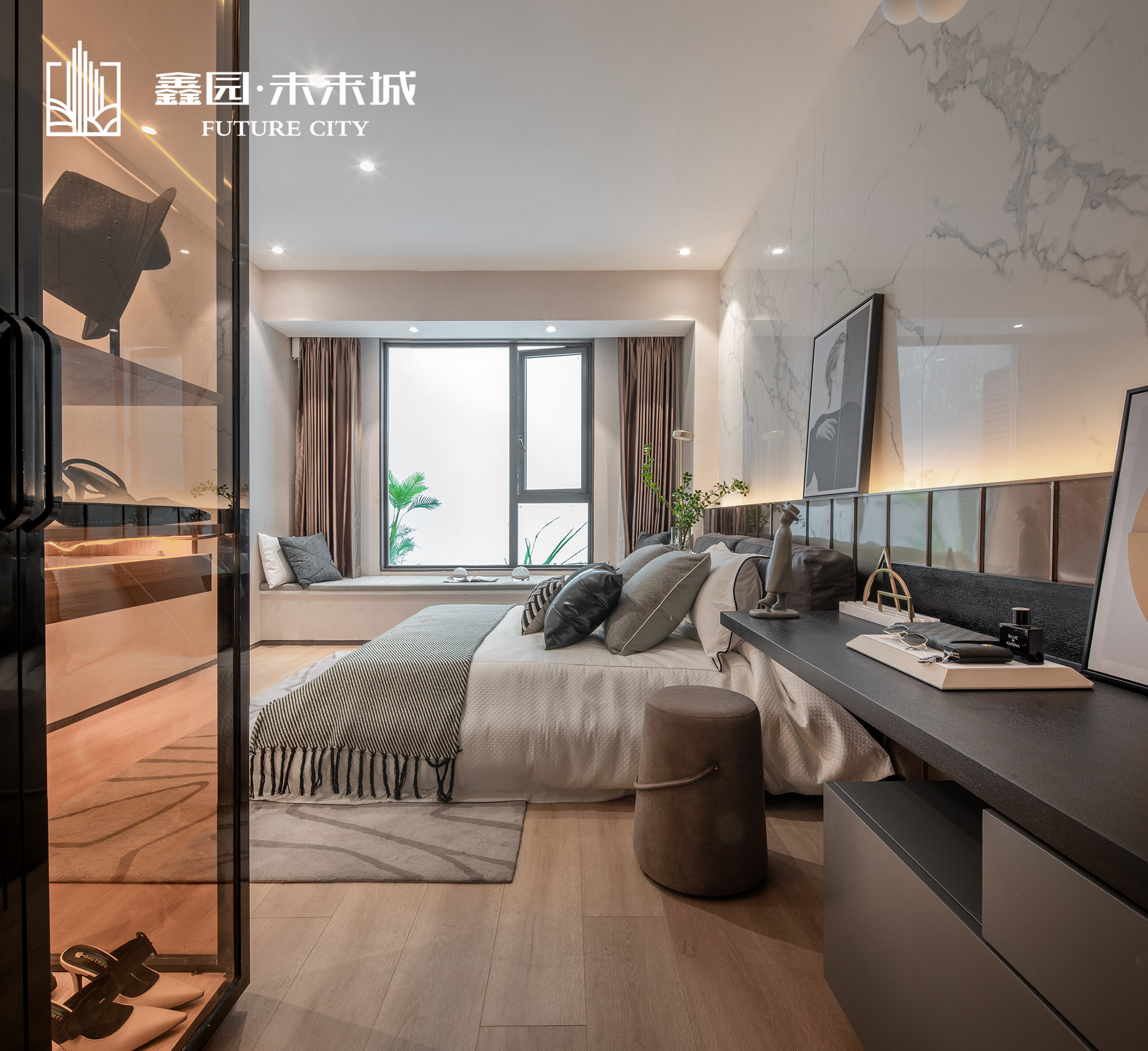 奢阔主卧套房,衣帽间、梳妆台、读书、学习多重功能都能在此得到满足。