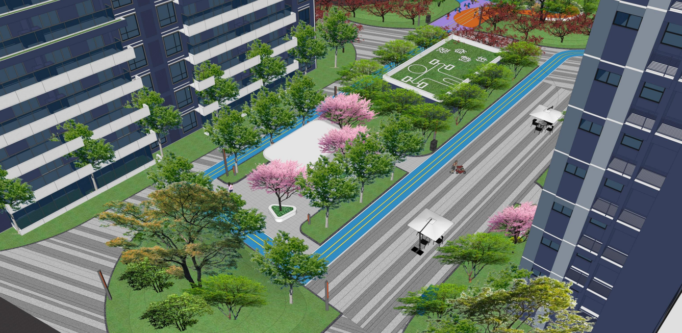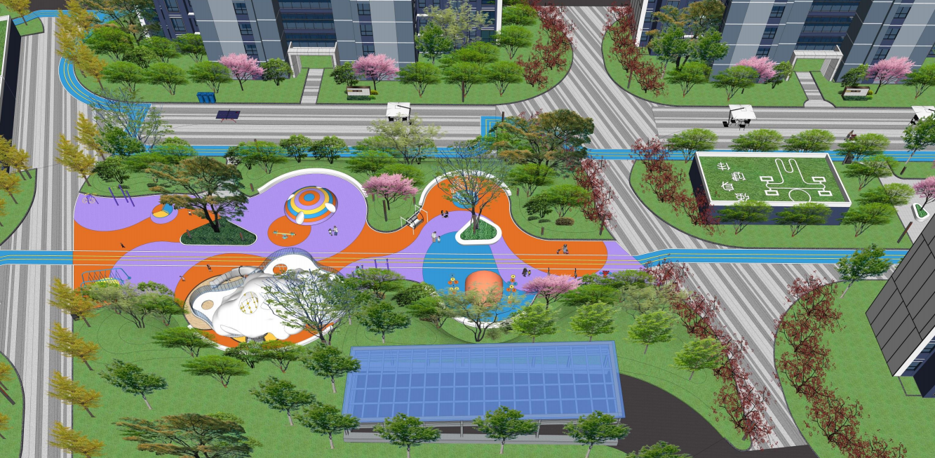 项目自身规划“一环、三庭、六轴、八景”全龄段主题乐园,配备900米乐环跑道,一座全龄生态运动型生态公园园林。