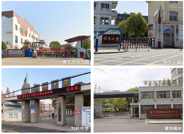 博艺灵幼儿园、杨市小学、刘岭中学、章华高中等