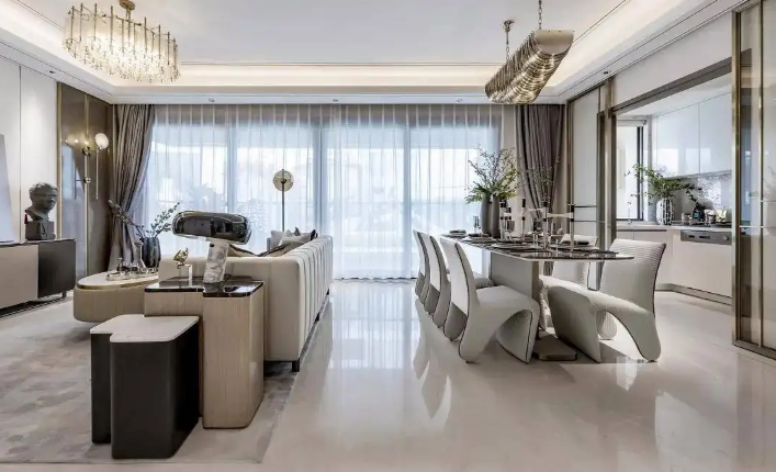 宽大横厅设计,女主人邀请好姐妹们打打麻将,男主人邀请兄弟朋友看看球赛,孩子的生日宴都能满足。人多时的热闹,雨天两人的静谧空间,都藏在这明朗客厅中。