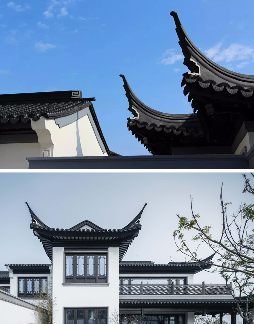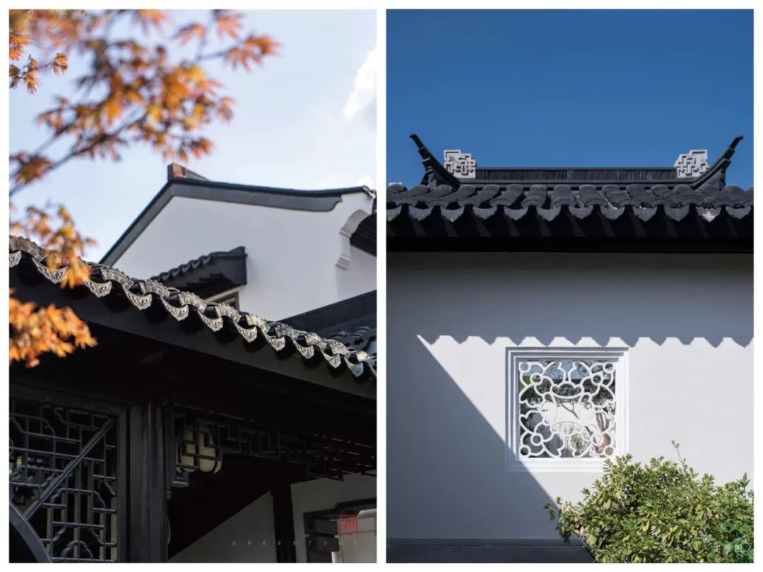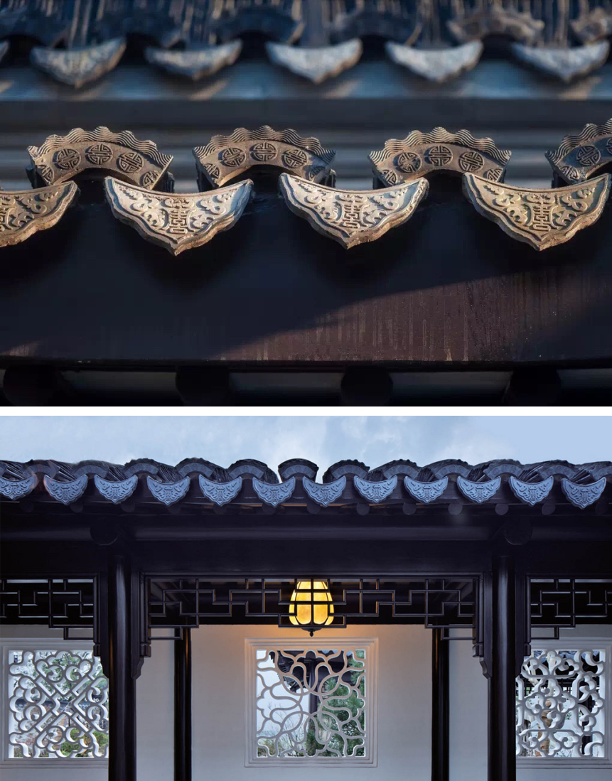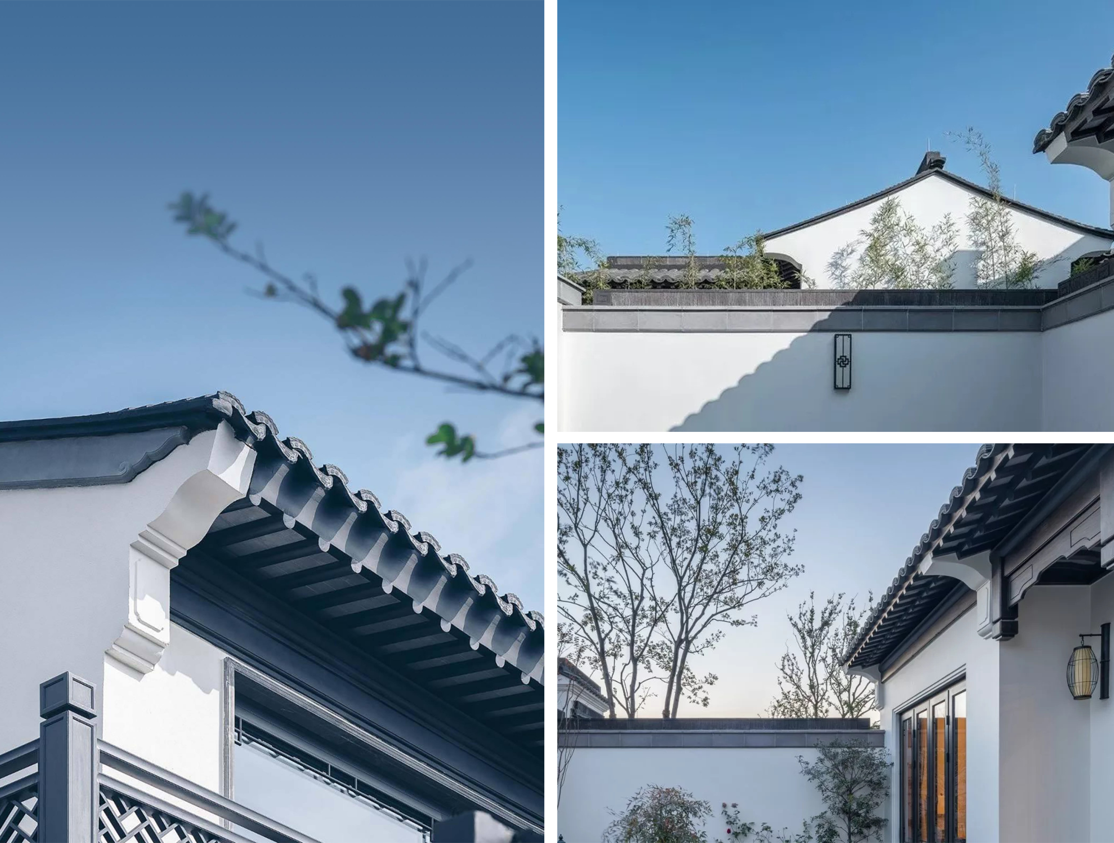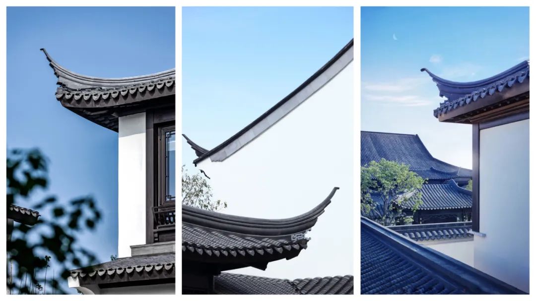 为保留飞檐的灵动,樟华九巷严谨推敲屋面弧度,屋面檐口采用平檐的檐口做法,工艺材质则使用铝代木,在“不可增一分,不可短一毫”的苛刻技法下,描摹中式建筑的柔美曼妙,整个屋顶也更加奢华耐久、现代精致。