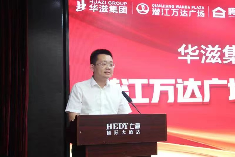 华滋集团董事长朱红岩先生上台致辞并介绍了万达广场的规划概况。他表示,作为潜江首座万达广场,项目总投资超10亿元,涵盖万达广场、特色商街、高端写字楼等多种业态,集购物、影院、电玩、餐饮、文化、娱乐等功能为一体。