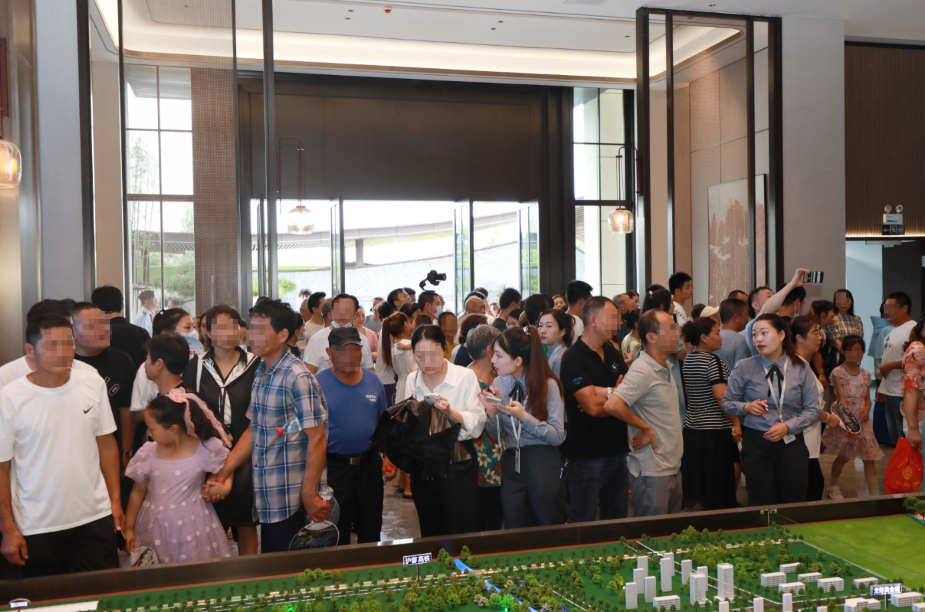 沙盘前挤满了前来看房的客户,购房者积极地向置业顾问咨询购房事宜,与家人朋友互相探讨,同时意向购房客户纷纷咨询置业顾问办理诚意登记。置业顾问们热情解说,场间座无虚席,人声鼎沸,热闹非凡。