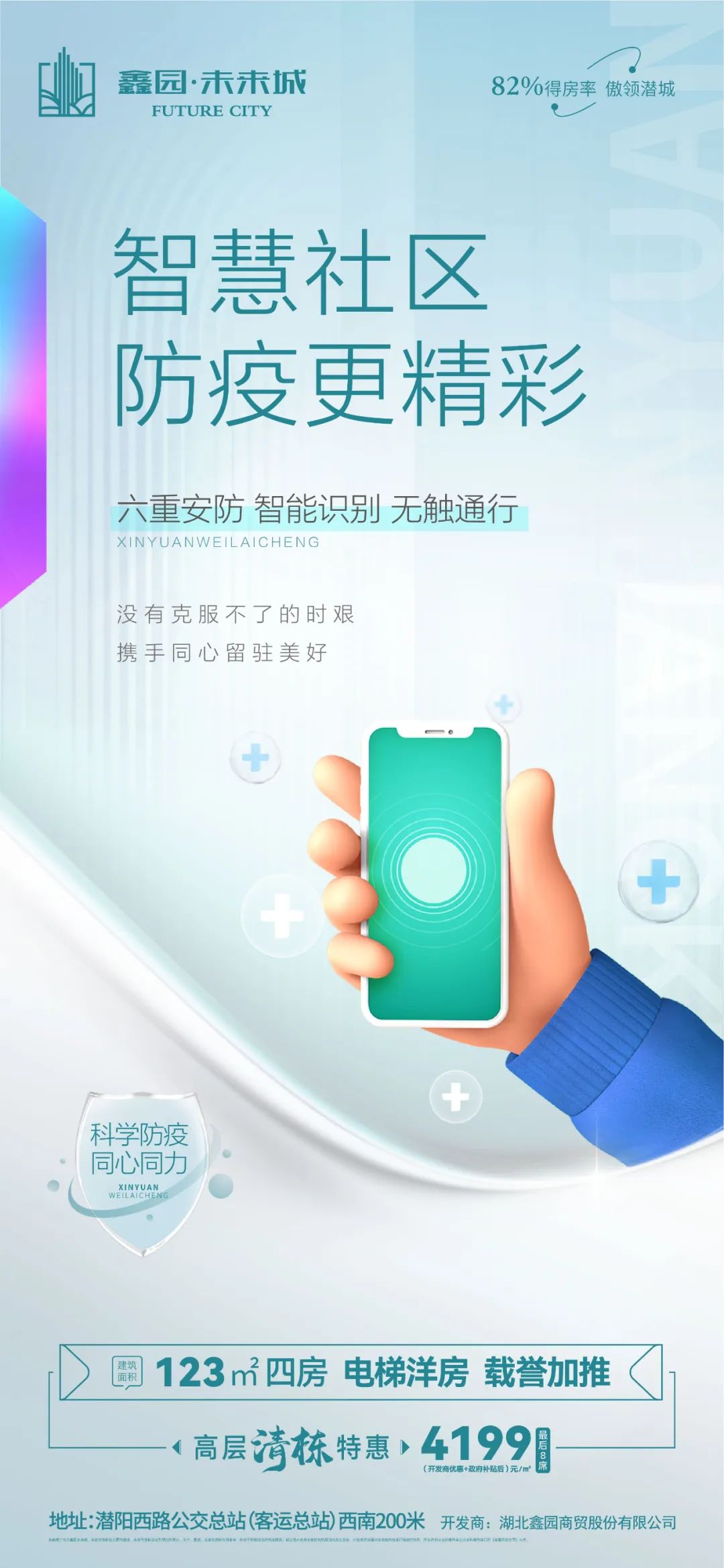 让科技服务于住区,鑫园.未来城首创“零接触” 智慧科技住宅,以健康居住为初心,防疫、抗疫更精彩!让家和社区成为每位业主坚固的健康堡垒,引领潜江智慧健康人居新生活!