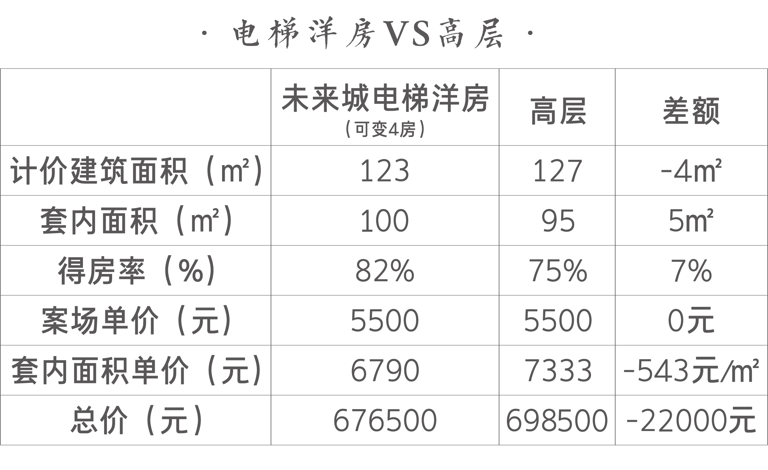 鑫园·未来城建面约123㎡电梯洋房,约18%低公摊,在对比友商楼盘高层动辄25%以上的公摊系数,更显十足诚意,让您不仅拥有更大的私属空间,且每分钱都花得物超所值。