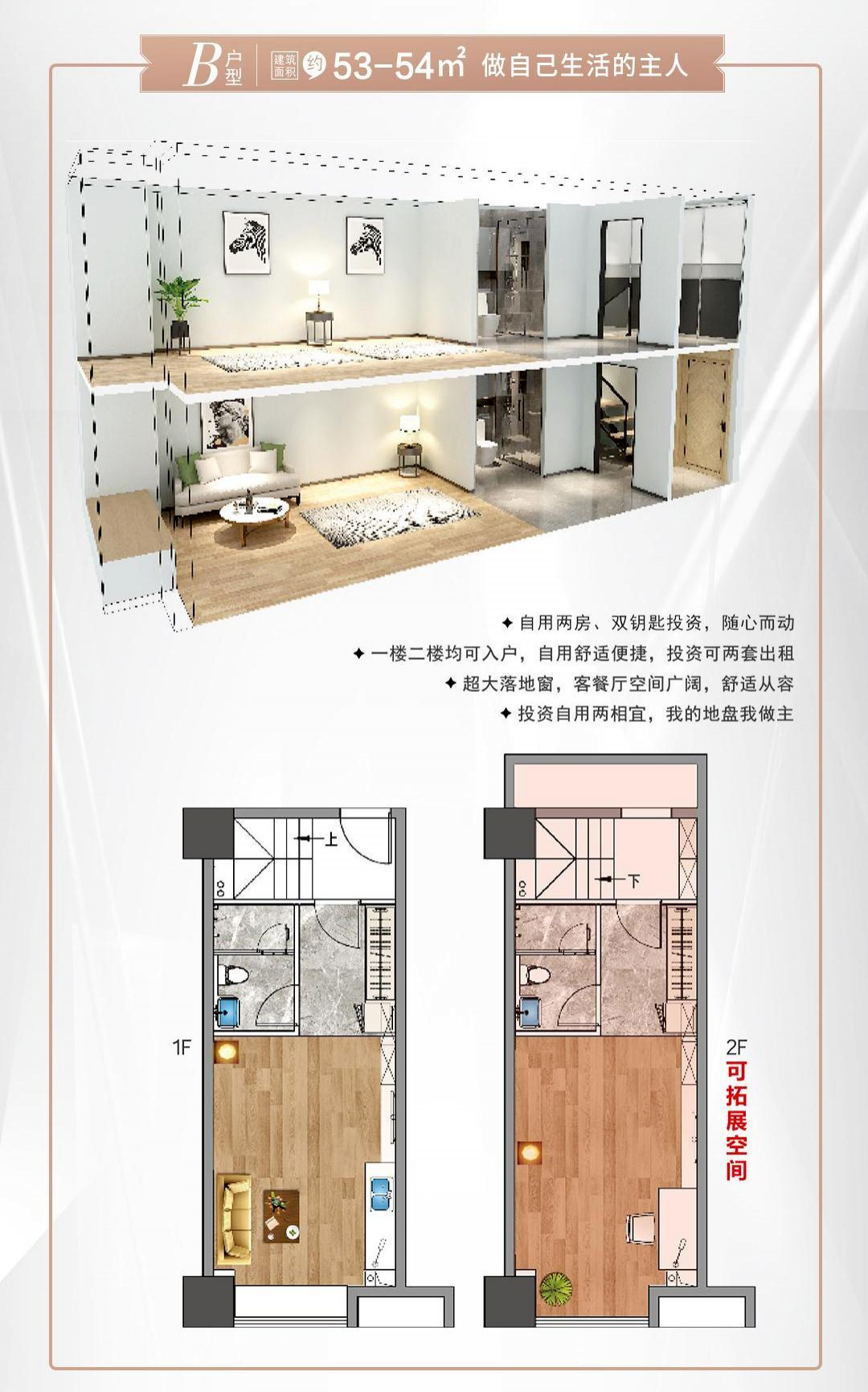 19#央景楼,6米挑高,建面约41-54㎡创客LOFT,合理布局,延伸空间尺度,让家中的每一个角落都是品质的呈现。