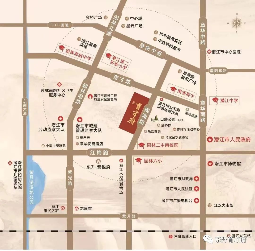 东升育才府地于育才路与南浦路交汇处,南浦路以西, 地处潜江市中心城区核心商圈腹地。项目通过南浦路、育才路串联城市交通网络,坐享覆盖全城核心区域的生活圈,拥有不可复制的地段优势,真正实现了出入皆繁华,城芯是我家的生活愿景,让您坐拥城央主轴,傲居潜城群首。