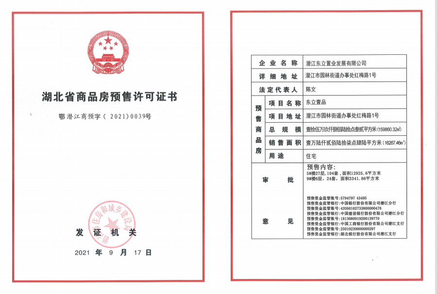 预售证号:鄂潜江商预字(2021)0039号