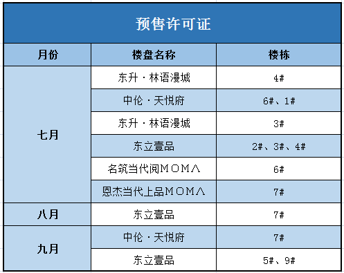 九月获得预售证的楼盘数量相比上一个月要多50%,毕竟上一个月可以说是潜江楼市比较“平静”的一个月,再往前面看,七月获得预售证的楼盘可以说是这几个月中较多的。小编专门整理出近期三个月获得《商品房销售(预售)许可证》的楼盘房源,有需要的可以参考哟~楼市”证“新鲜,有证更靠谱!