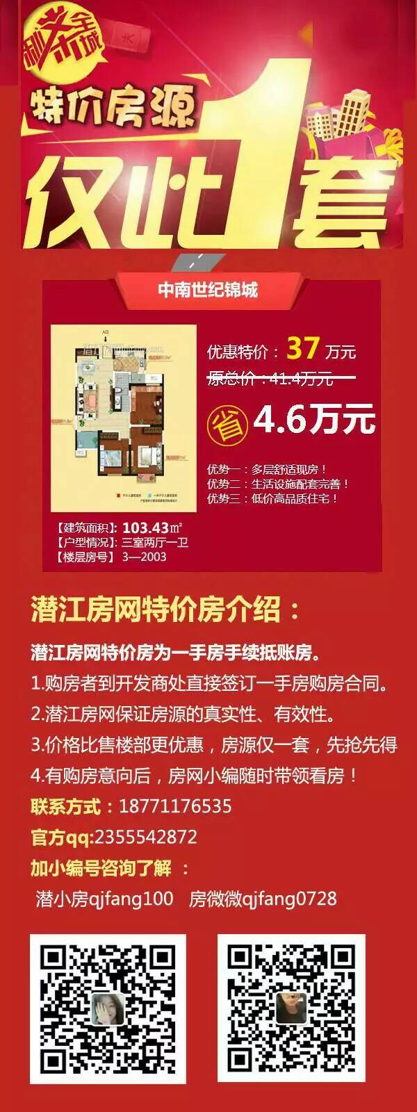 更多关于:购房知识、购房技巧、楼盘信息、楼盘优惠、楼盘综合比较、购房推荐、陪购买房、砍价优惠可以添加小编微信(qjfang100),欢迎咨询~