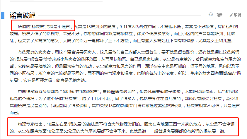 部分人在买房时都听过“9-11层是扬灰层”的说法,即这个高度范围内灰尘密度较大。物理学家指出,这种说法不符合大气物理常识,空气中的污染物随气流不断沉降和流动,对空气中没有污染源的情况下,楼层越高,空气越干净。