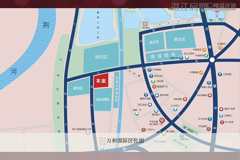 万和国际位于潜江市马昌垸路南侧,东临百里长渠景观带,西临东荆河风景林带,北望曹禺公园三期,南临阳光西苑10万方居住大区。距城市中心10分钟路程,金融银行、医疗配套、教育机构为完备生活提供全方位服务与便利。【最新优惠】